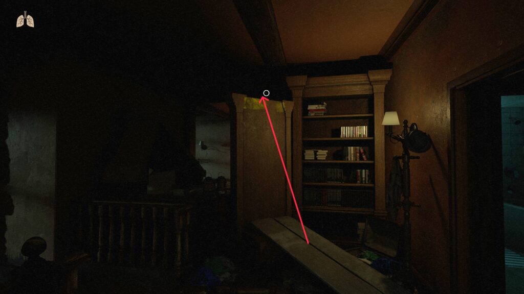 2Fでは壊れた壁を抜けて部屋に入り、屋根を通って隣の部屋に入りましょう。