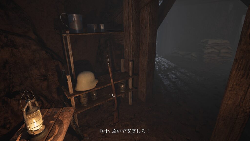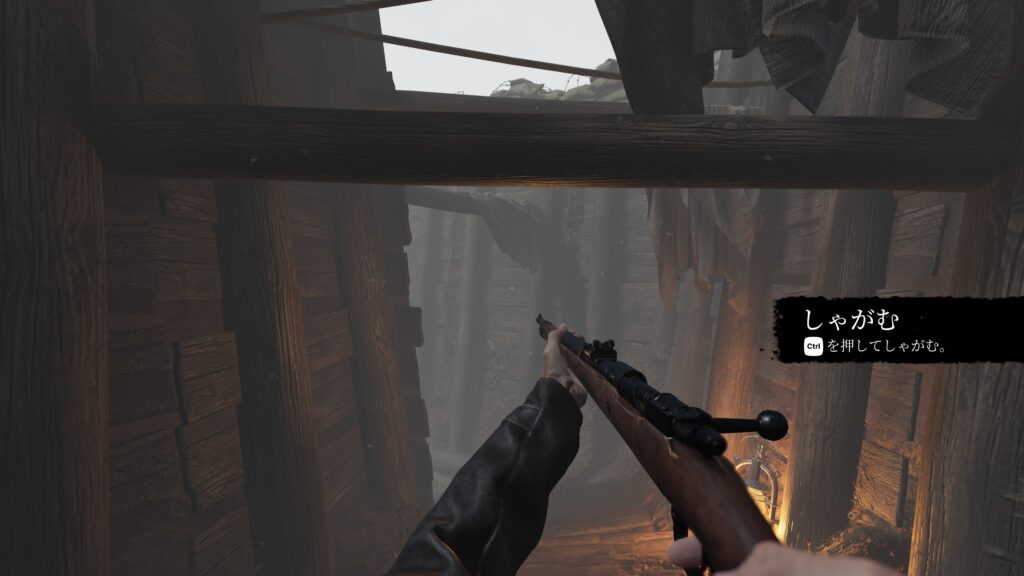 銃を手に取り、外に出ます、