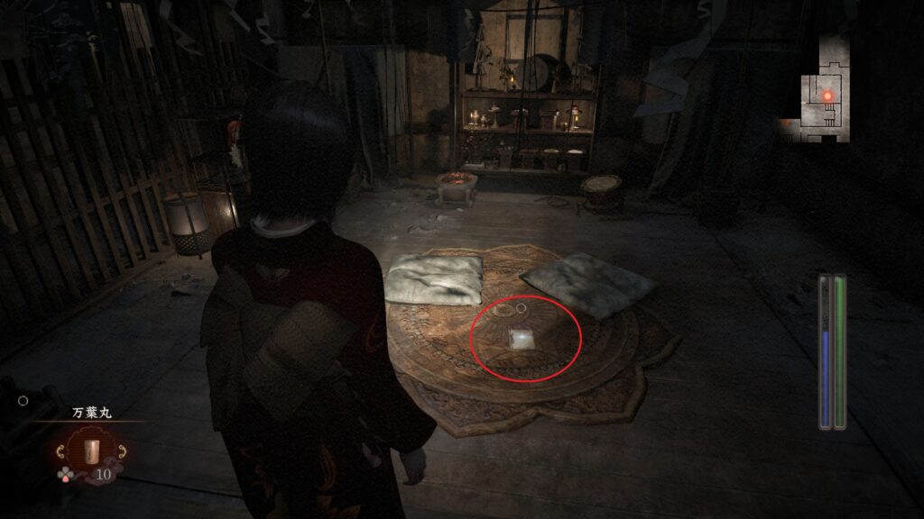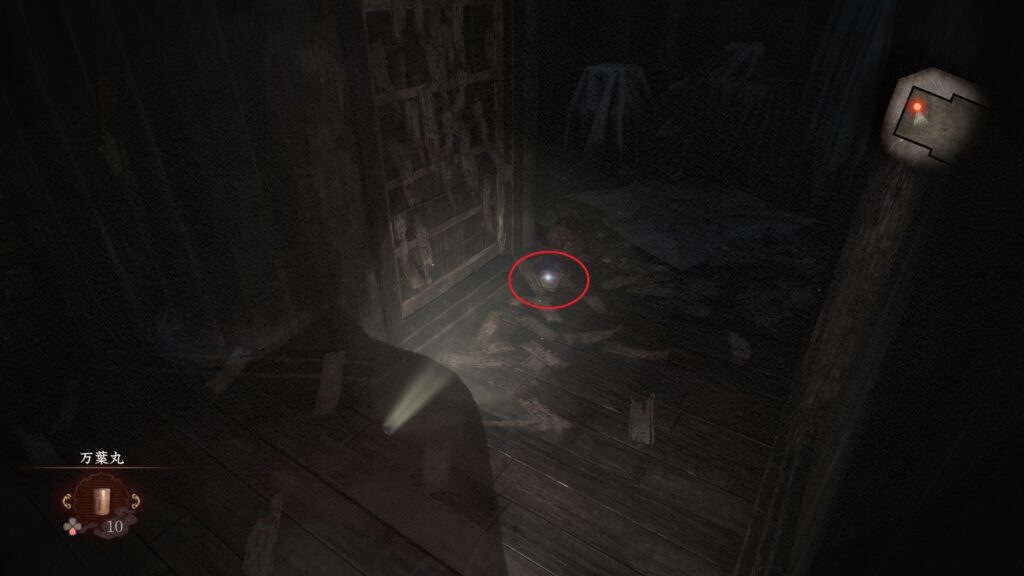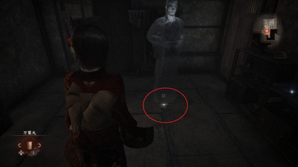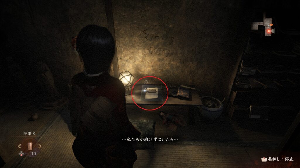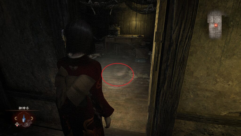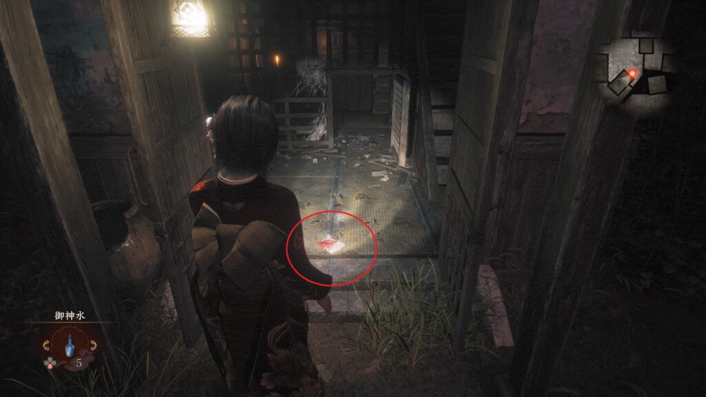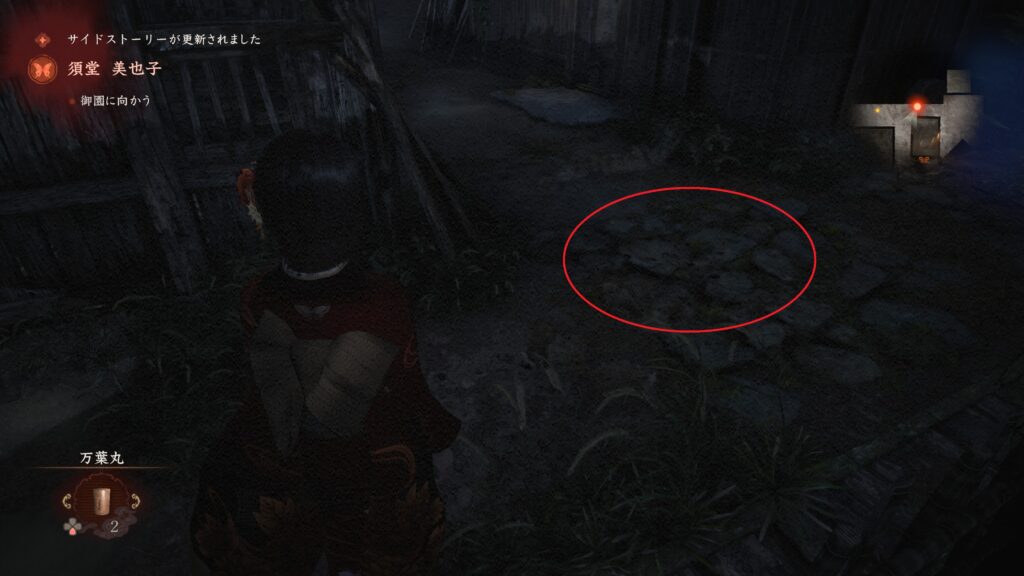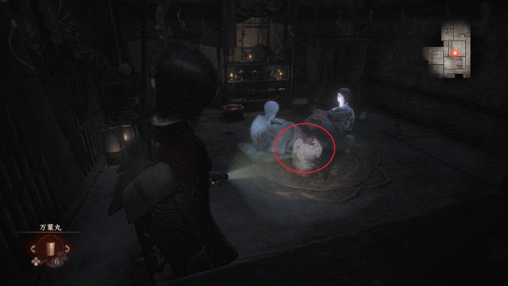 「子どもの書置き 六」を入手後子供の霊3体を撃破、画像の位置で呼び戻し
