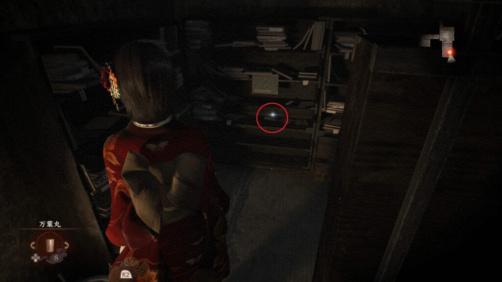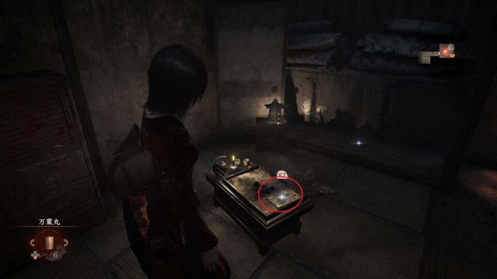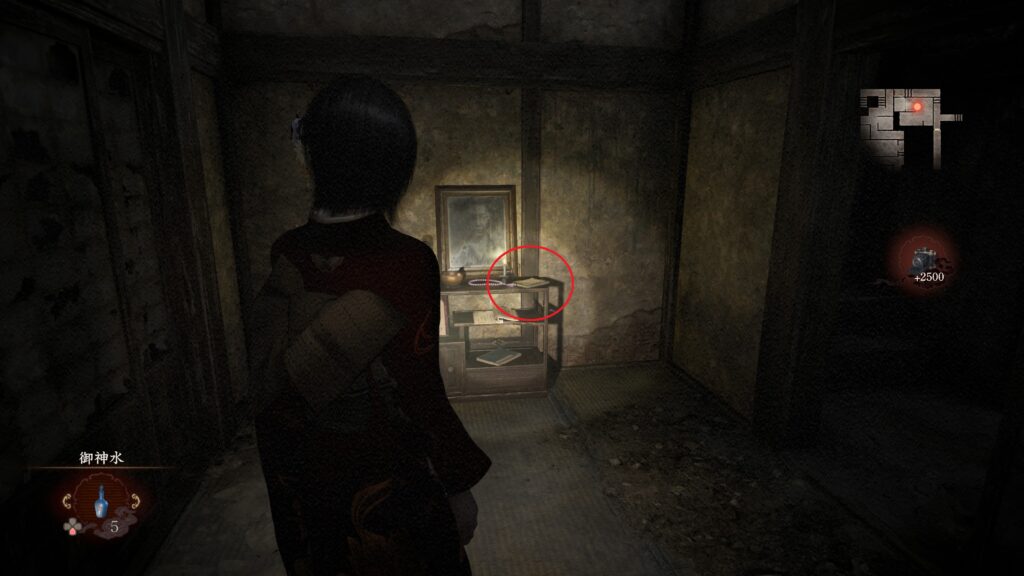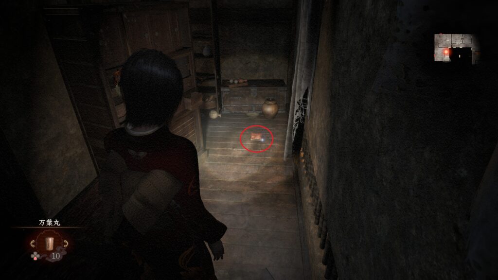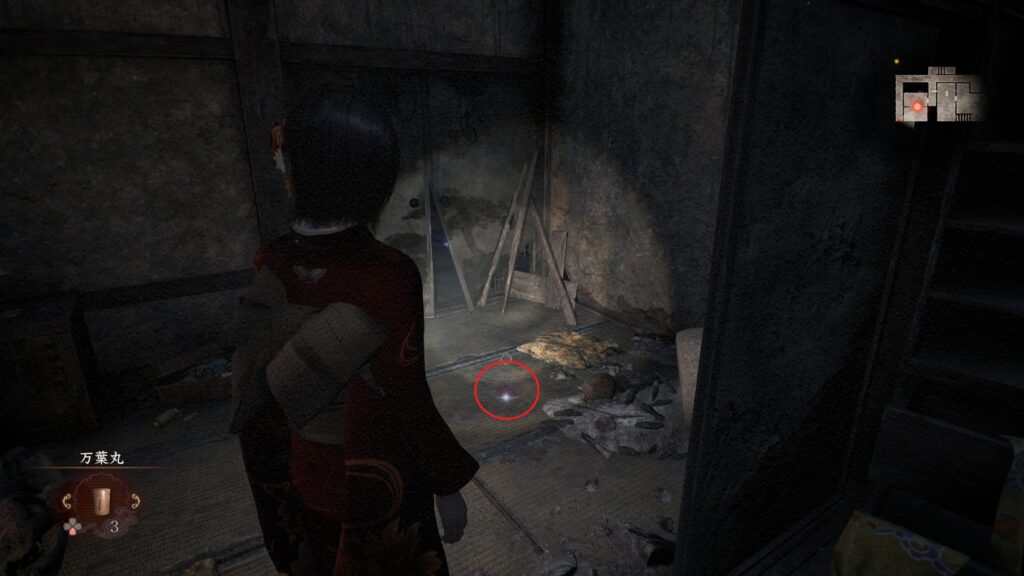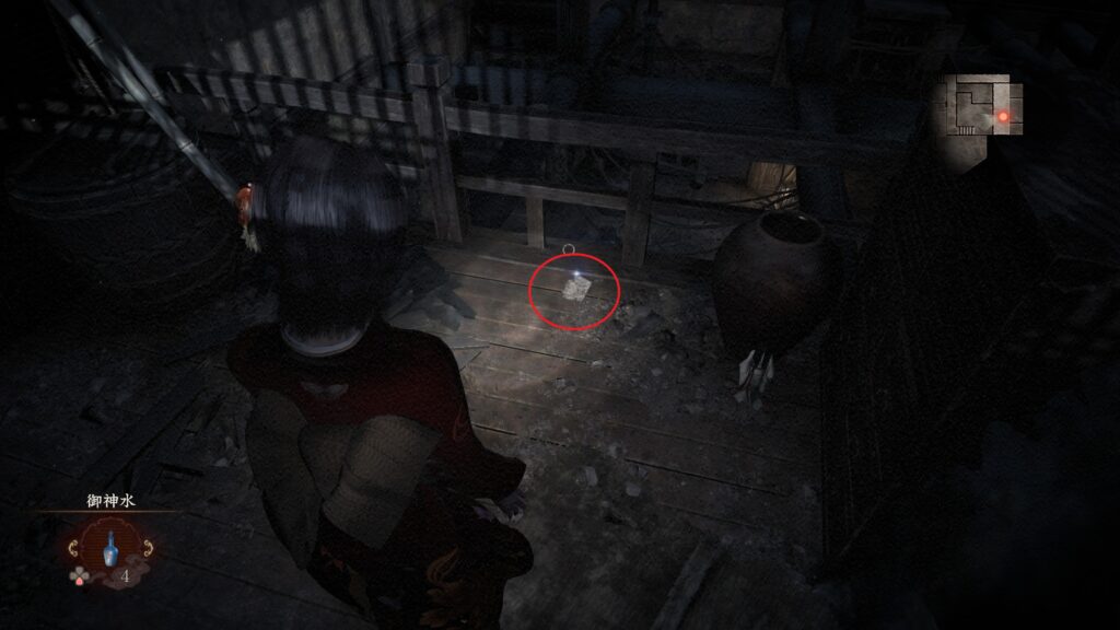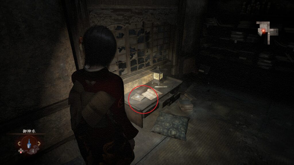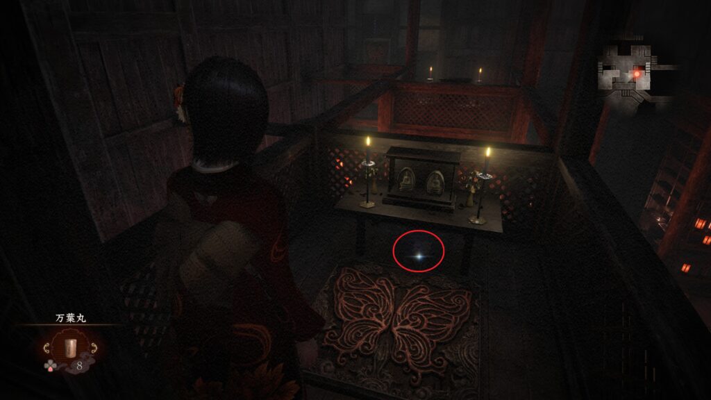 「子どもの書置き 六」を入手後子供の霊3体を撃破、画像の位置で呼び戻し