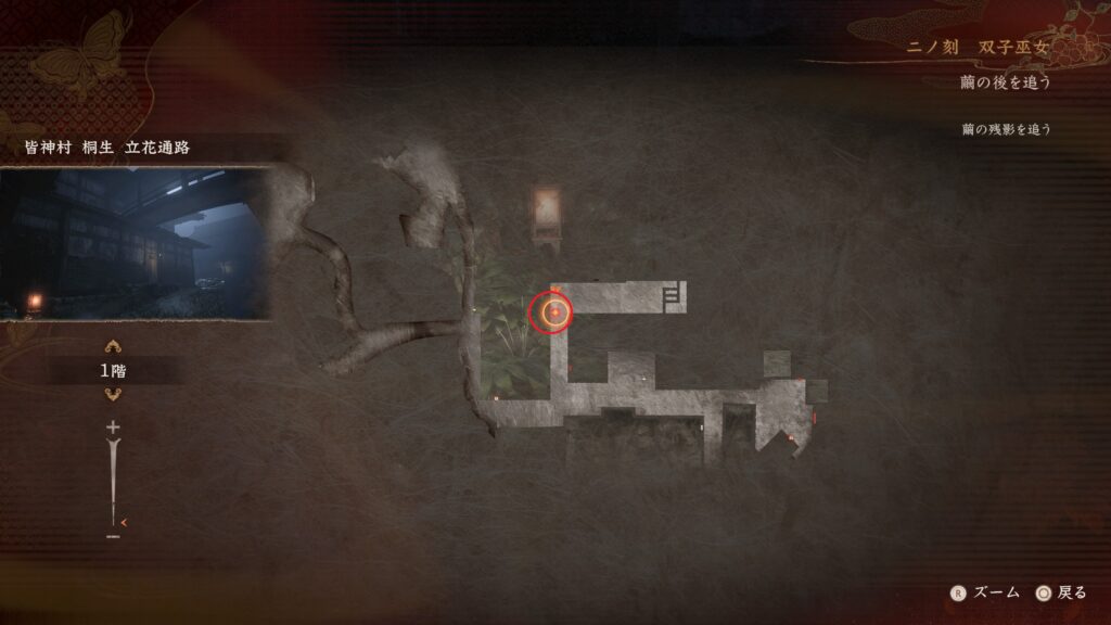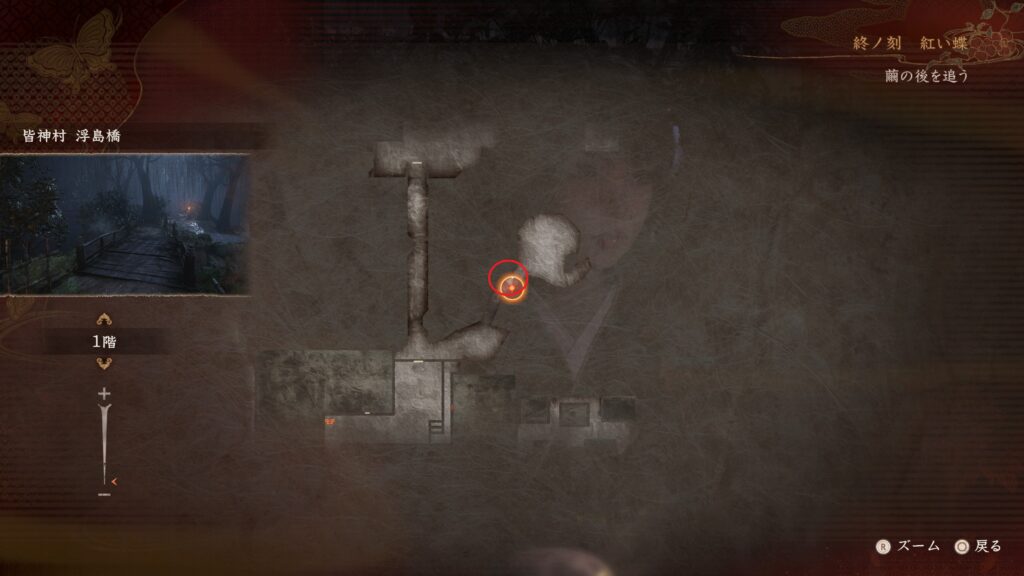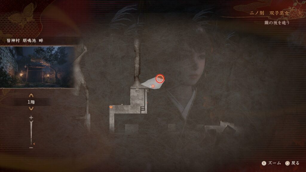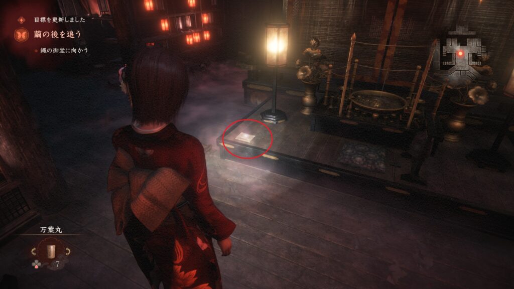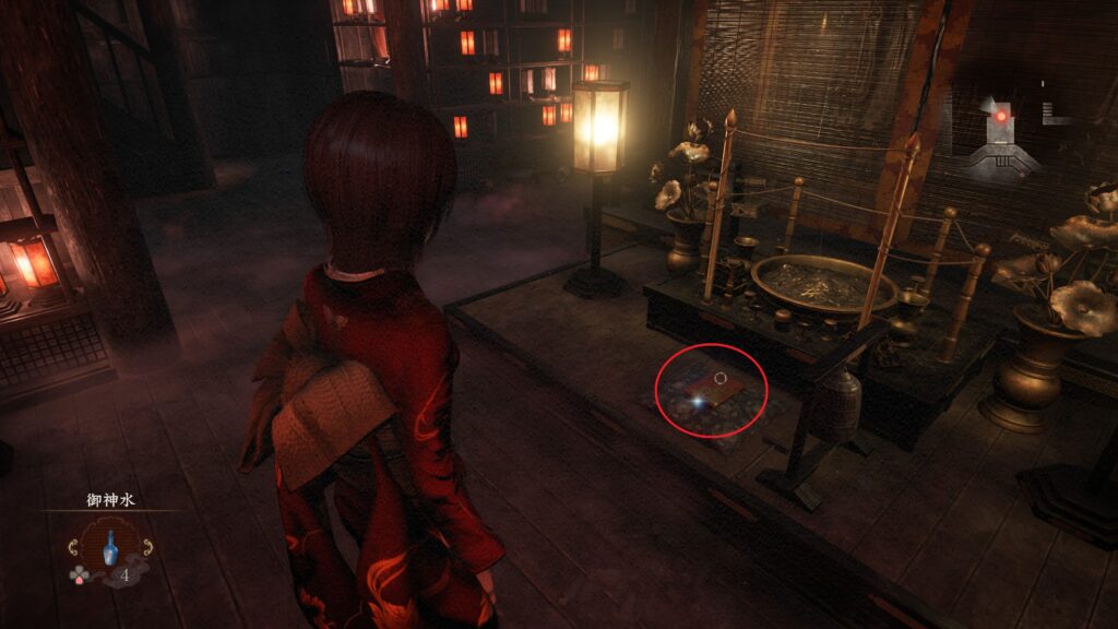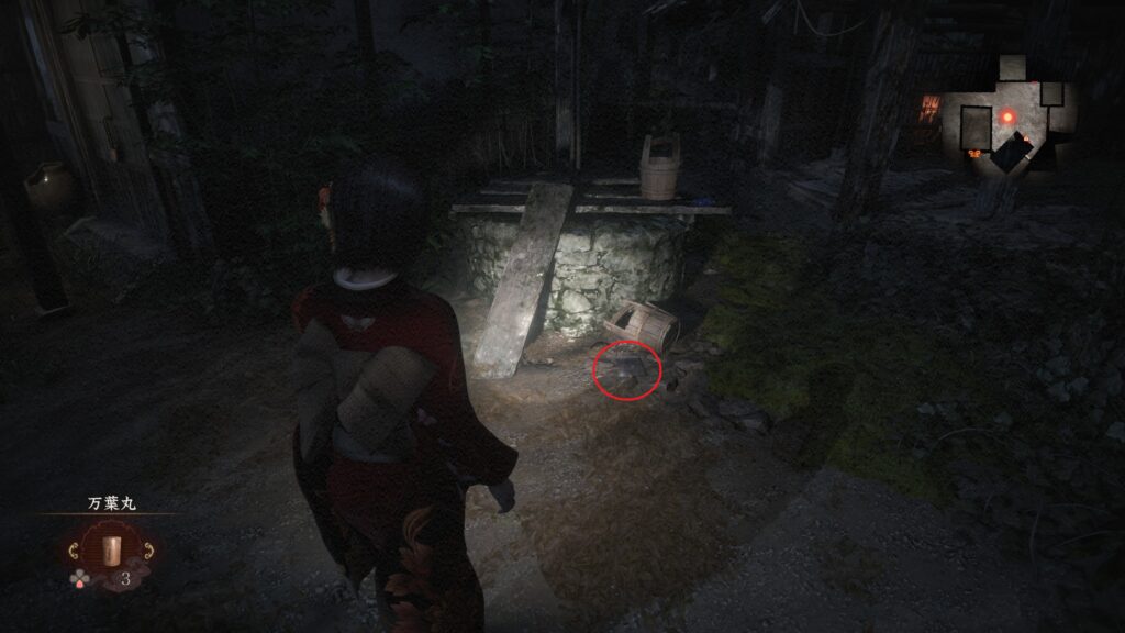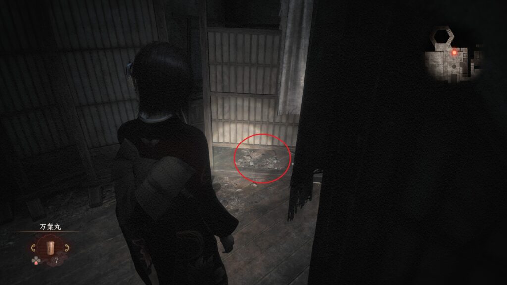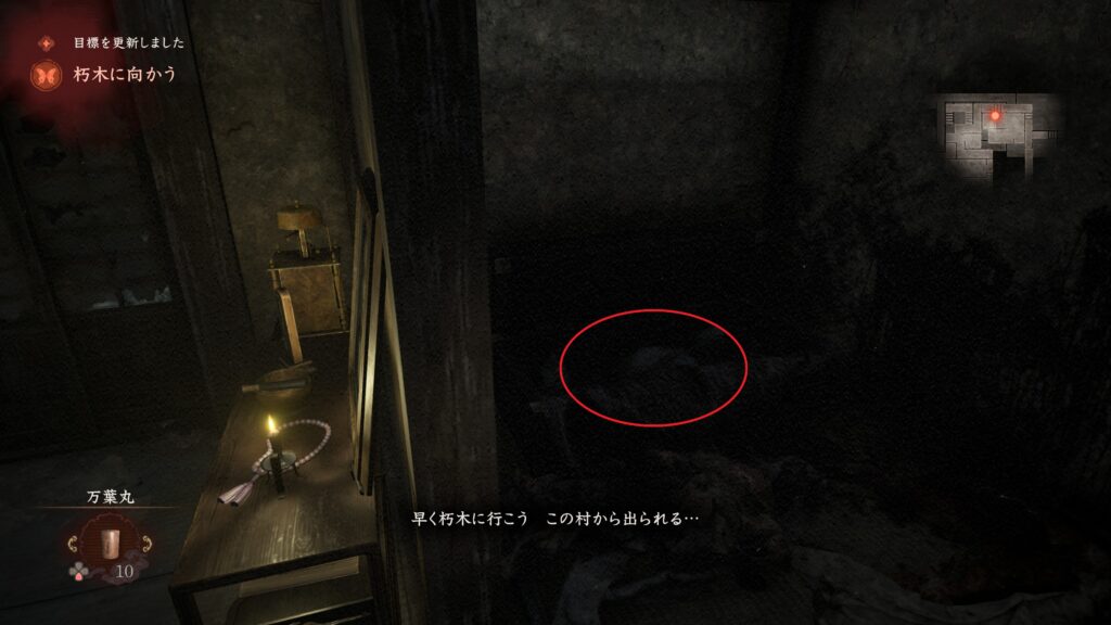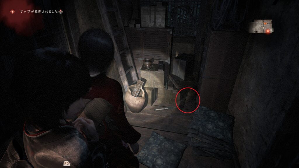 「子どもの書置き 六」を入手後子供の霊3体を撃破、画像の位置で呼び戻し