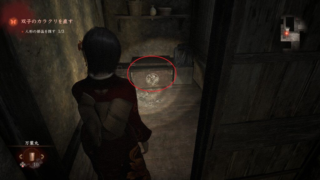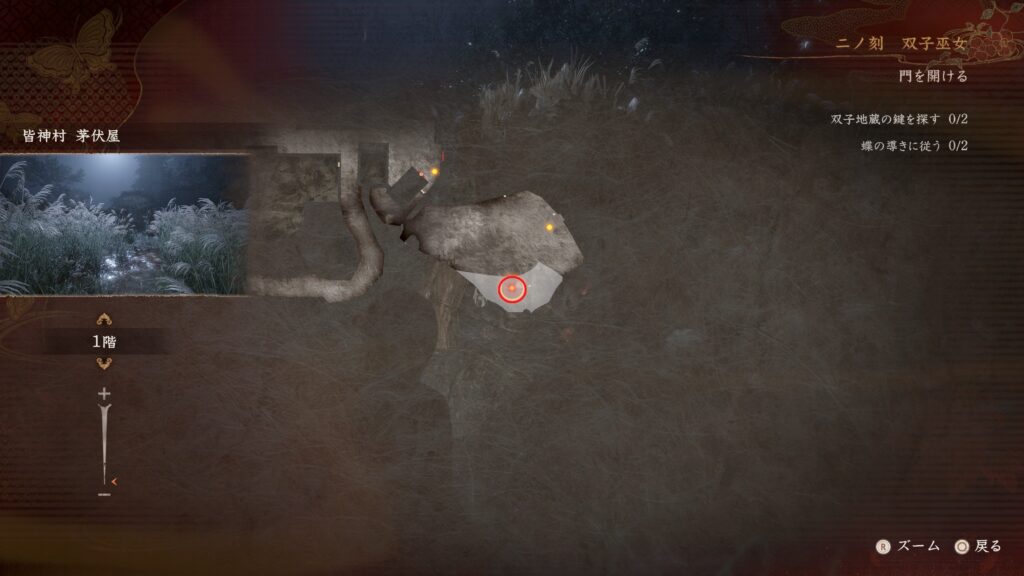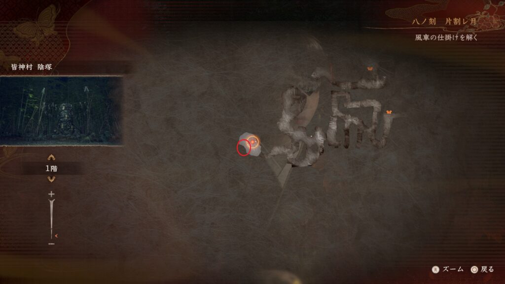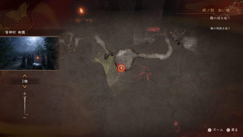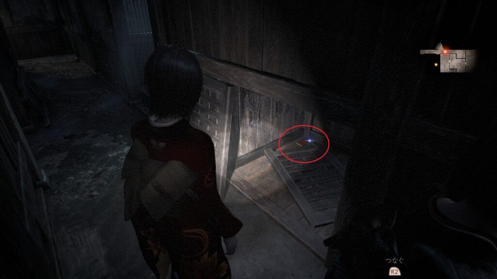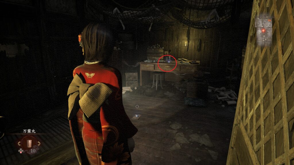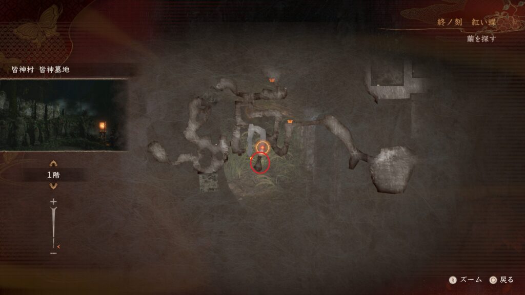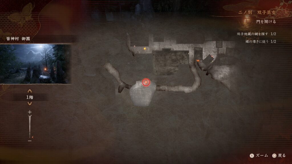 「子どもの書置き 六」を入手後子供の霊3体を撃破、画像の位置で呼び戻し