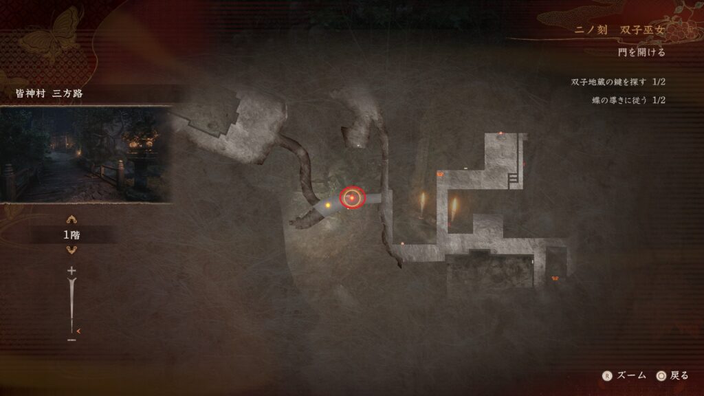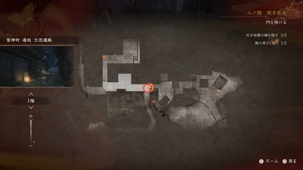 | 女性の手帳 六 | 皆神村 逢坂 立花通路 「双子地蔵の鍵(左)」入手後 |