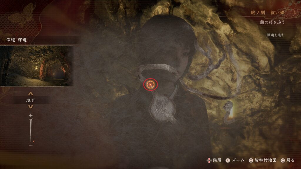 | 民俗学者の手記 十四 ※2周目以降 | 深道 深道(鍈火堂地下) サイドストーリー「禊3」 |