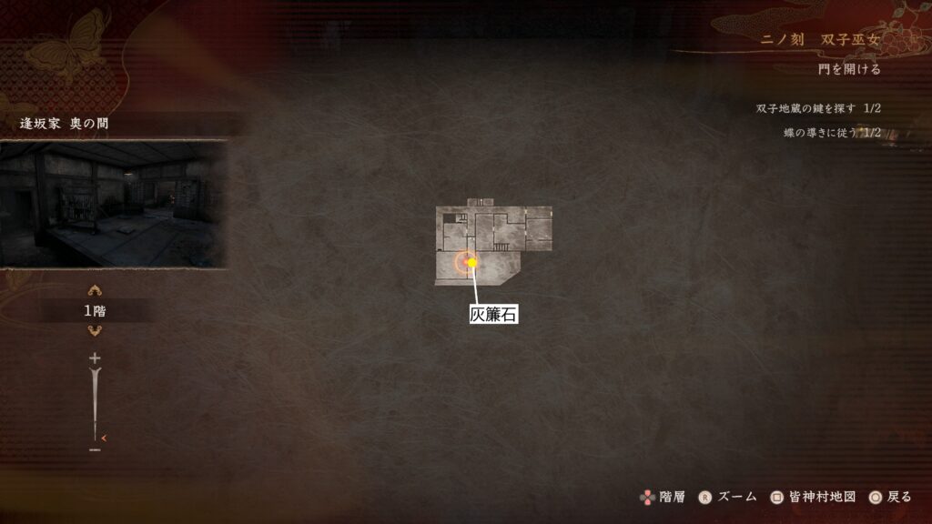 | 入手場所 | 皆神村 皆神集落 「双子地蔵の鍵(左)」を入手する家屋の棚の中 |