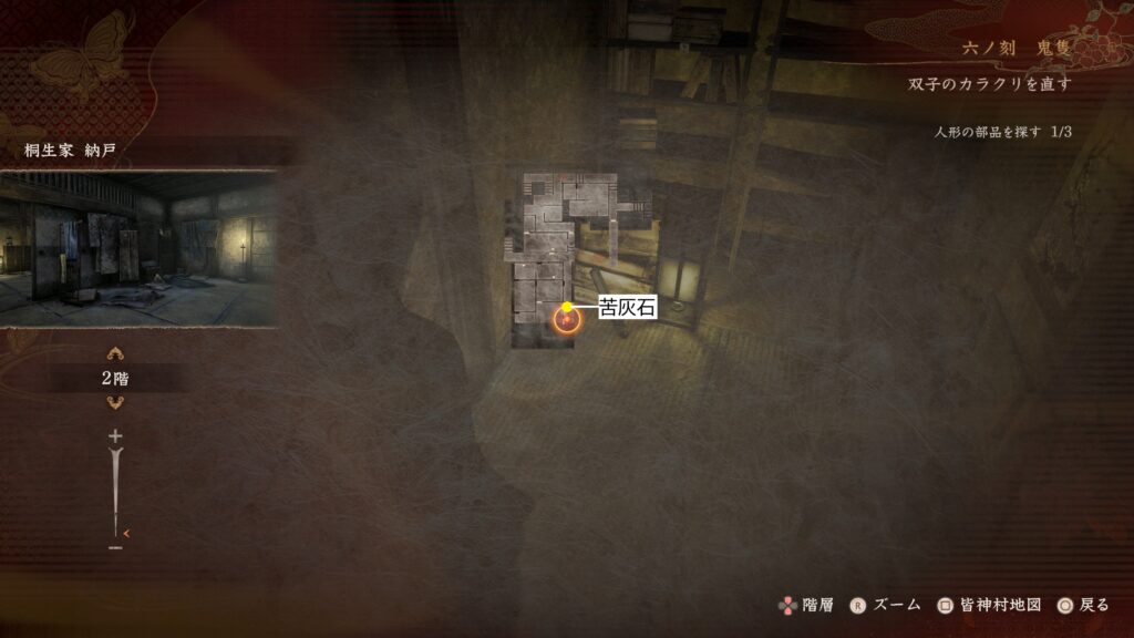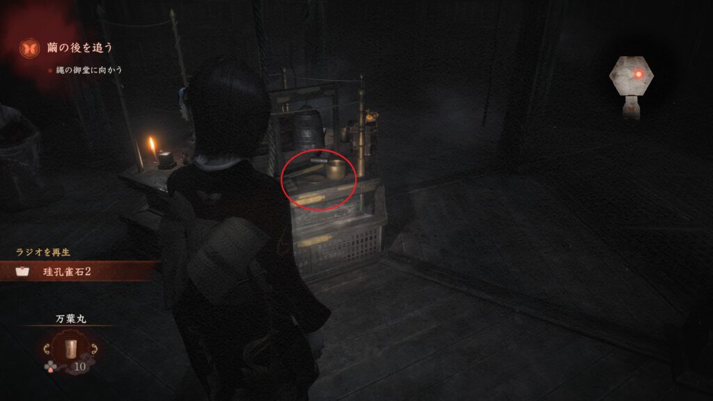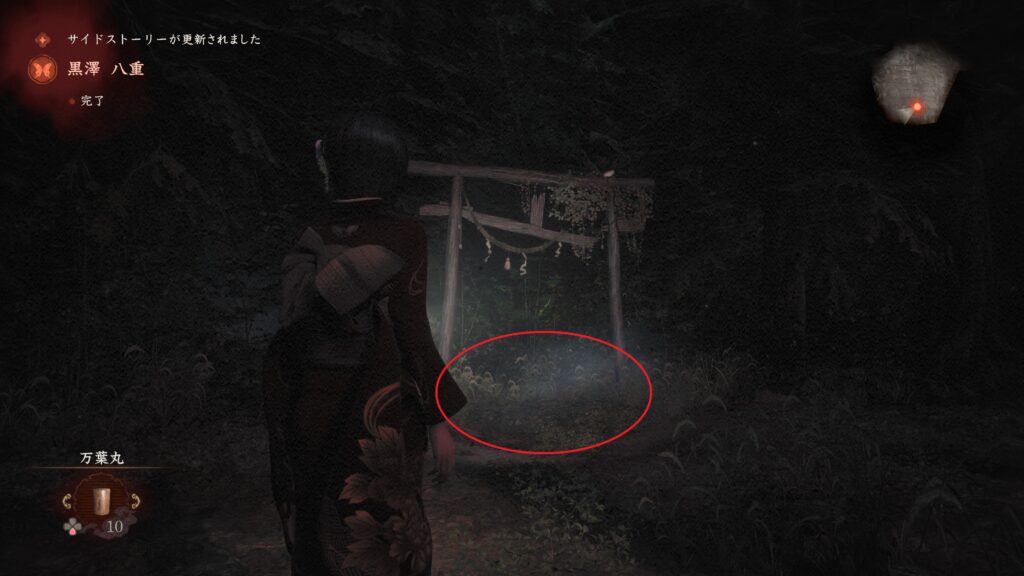 | 入手場所 | 黒澤家 境内 二ノ刻の最後、繭が黒澤家に入っていく時 |