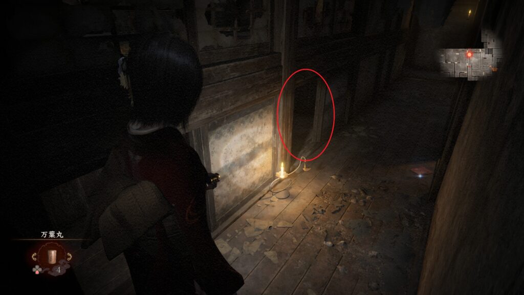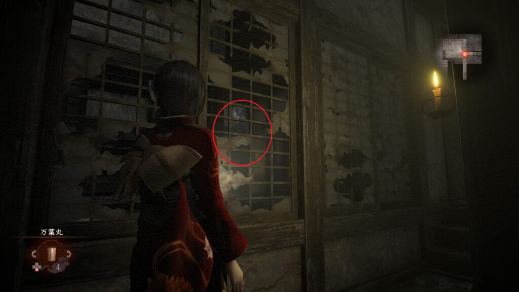 懐中電灯→女性の日記1→女性の日記2を入手すると窓外に出現