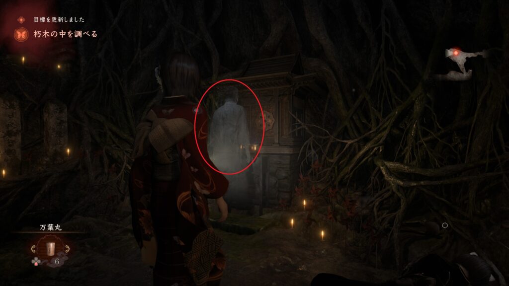 朽木に到着すると繭が倒れ込むので調べると虚夢に飛んで撮影できる