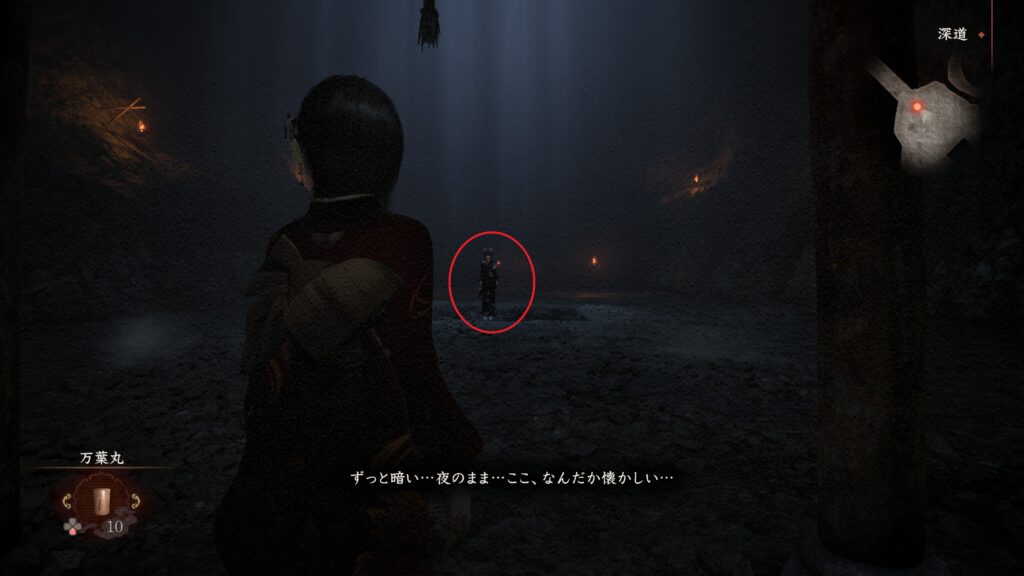 サブストーリー「遊ぶ子供たち」完結後、鍈火堂から村方面に戻る橋で出現