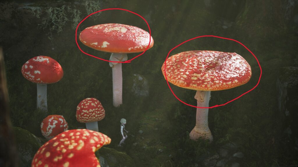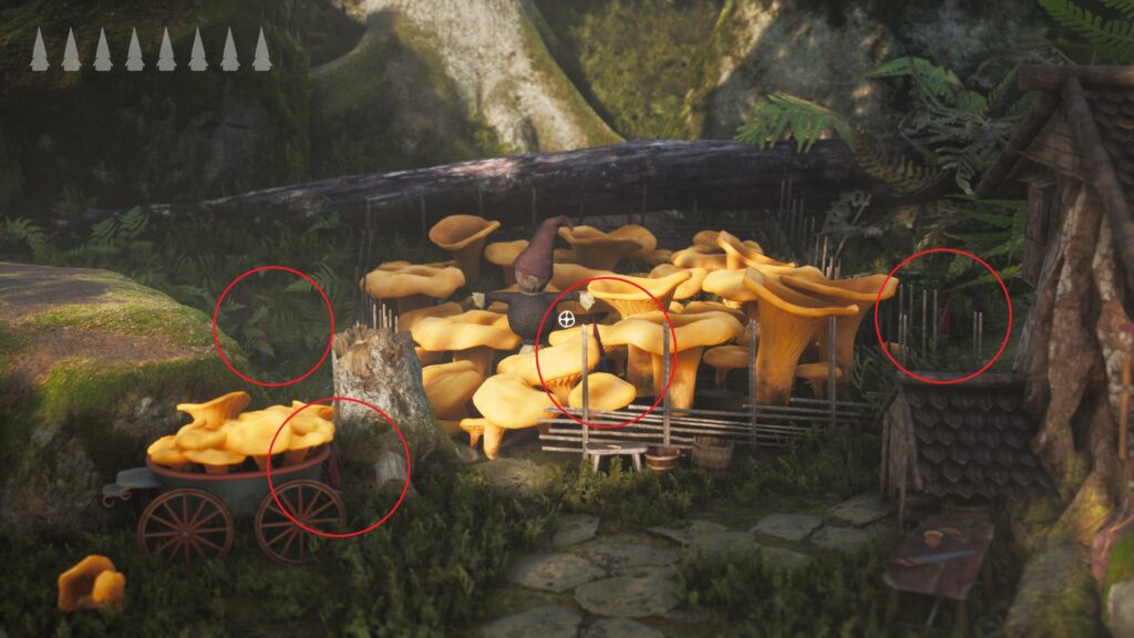 赤丸2つのキノコを各5回ずつ飛んで胞子を落とすとトロフィー