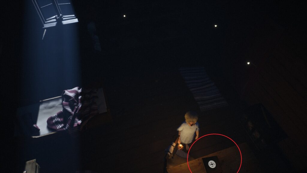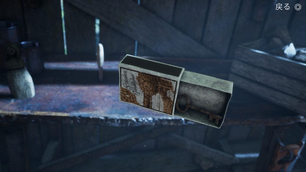 ツリーハウスに入りマッチを調べ、回転させて中にある鍵を落とすと鍵を拾えるようになる。