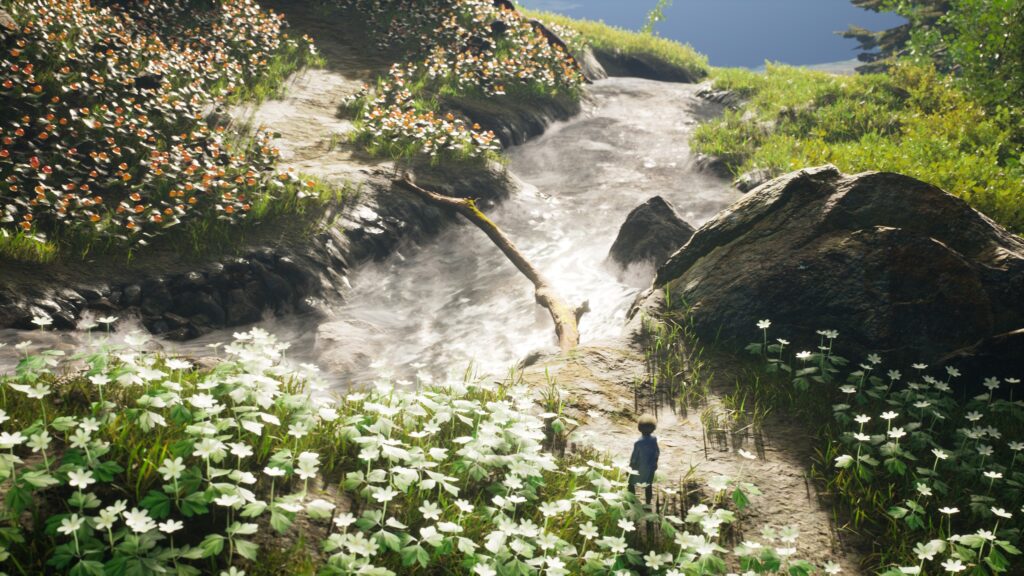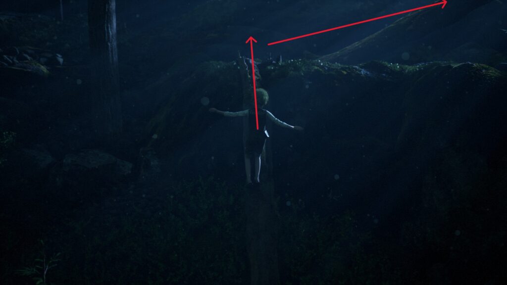 目覚めると森に立っているので画面上に向かって進んでいきます。