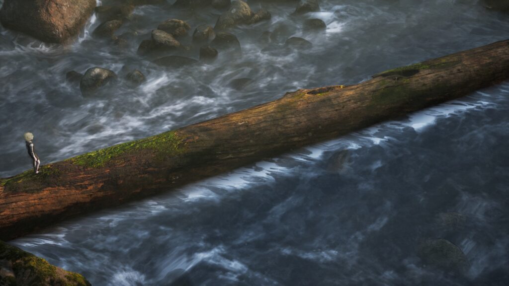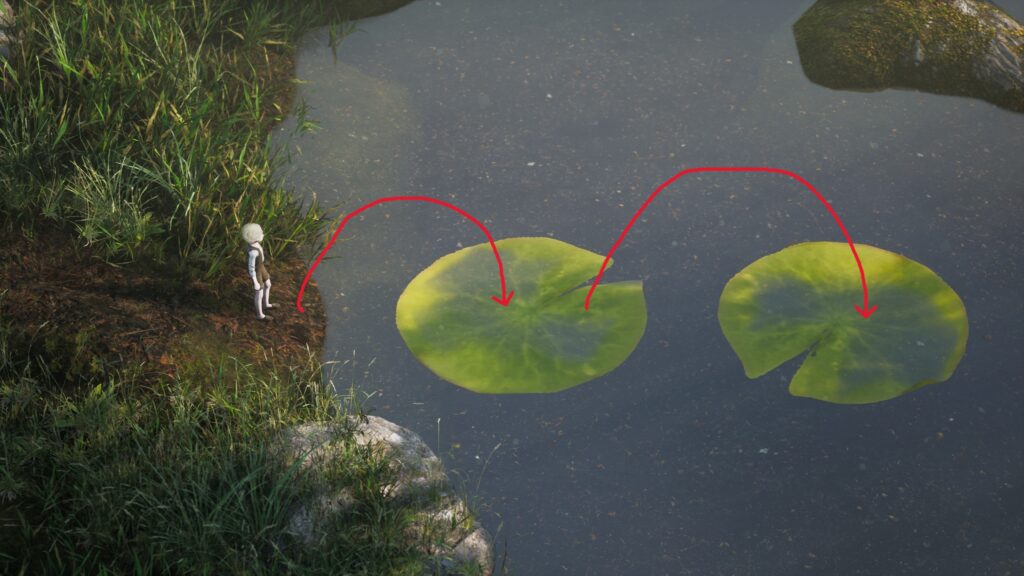 最後は丸太から岸へジャンプが必要です。