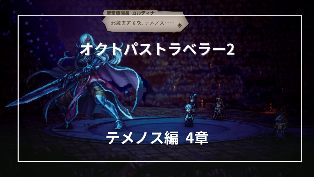 オクトパストラベラー2のストーリー、テメノス編4章の攻略情報です。 テメノス編 4章 推奨レベル45 テメノス編4章はトト・ハハ島「ナ・ナシの里」にて始まります。 黒幕カルディナを追い、ナ・ナシの里にたどり着いたテメノス。教皇の殺害から始まったこの... -
