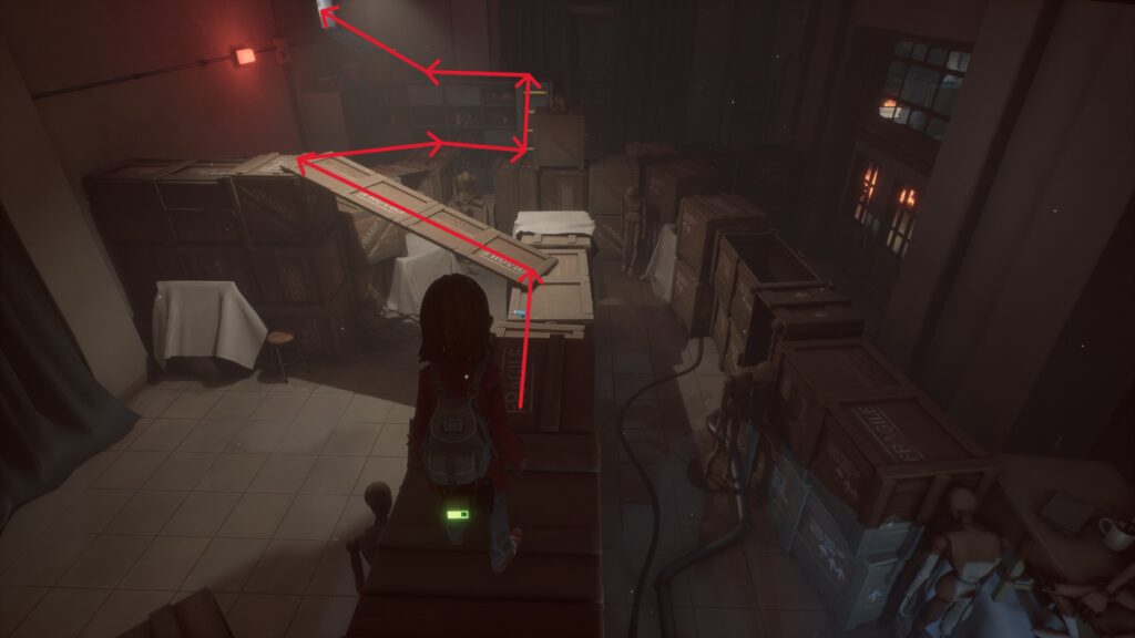 木箱に乗って目の前左奥に見える換気口を目指します。
