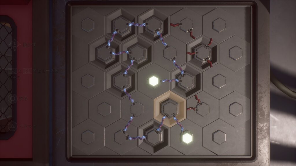 「ギア」を付けた後、台車の上にある黄色い石にビームを当てることでドアが開きます。