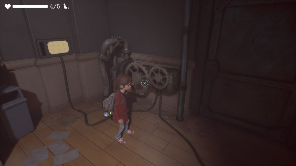 水たまりがあったところを右に曲がった先に歯車があります。