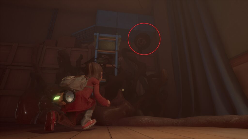 ハシゴ滑車の周りにある3つの目玉を破壊し、ハシゴを移動させると隣の部屋に入れます。