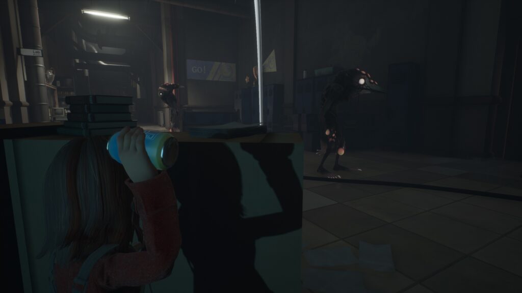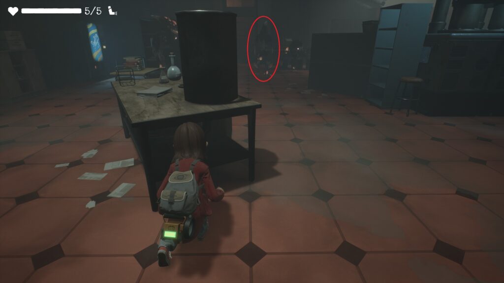 敵の背後にある机の陰に隠れてクラス206に向かって缶を投げます。