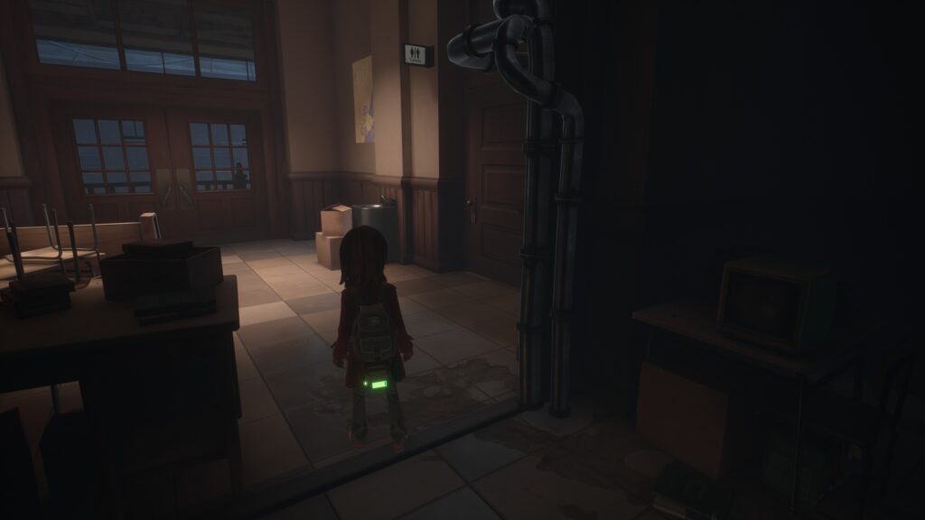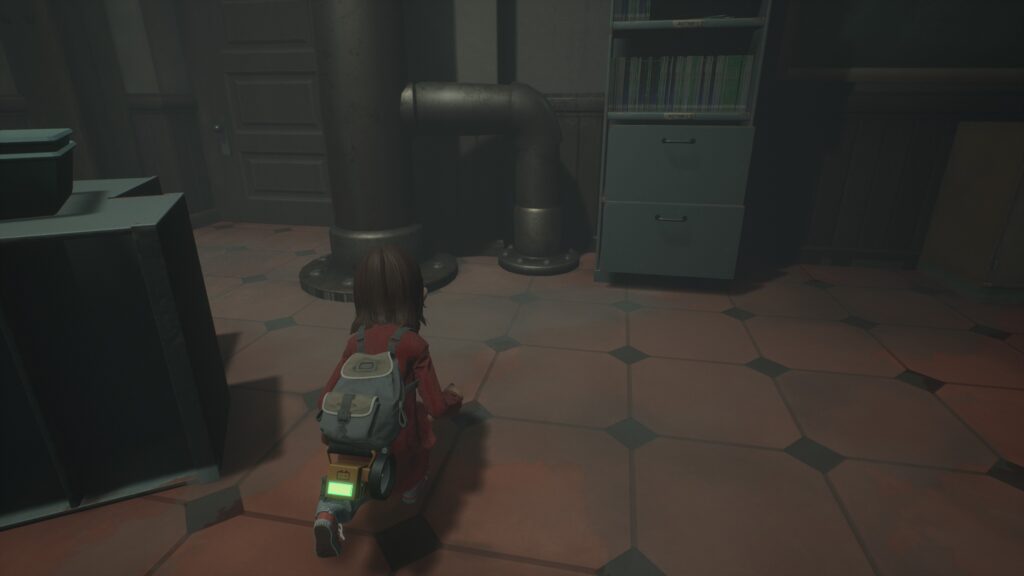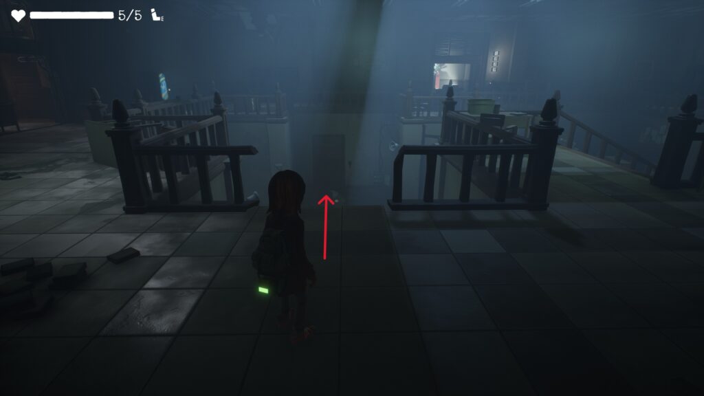 巡回の敵の視線にだけ気を付けてしゃがんで左上のドアを目指します。