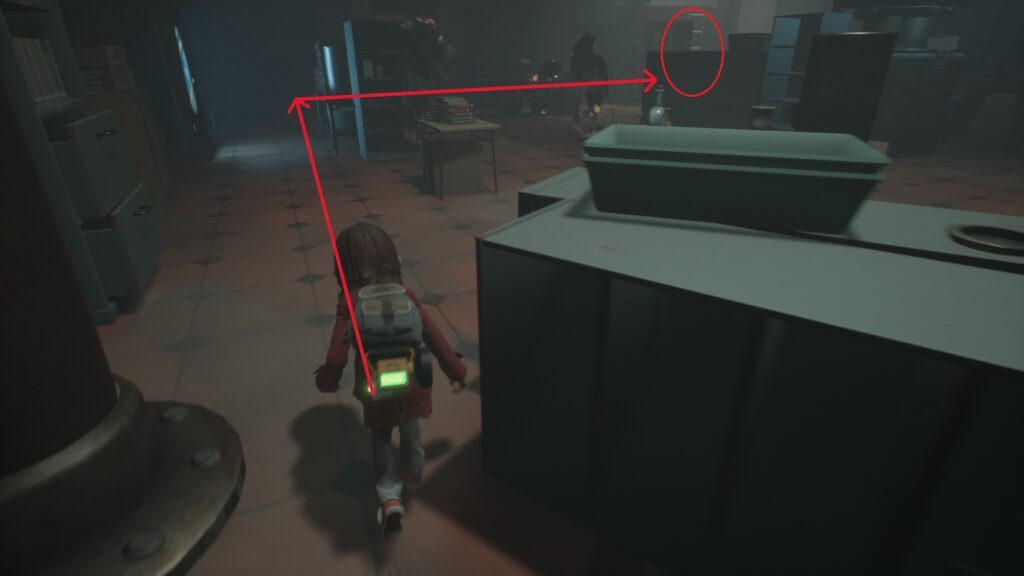 敵が動いている間にしゃがんで通り抜けましょう。