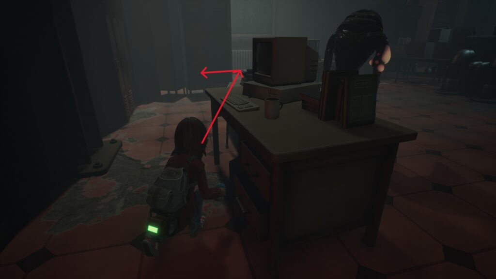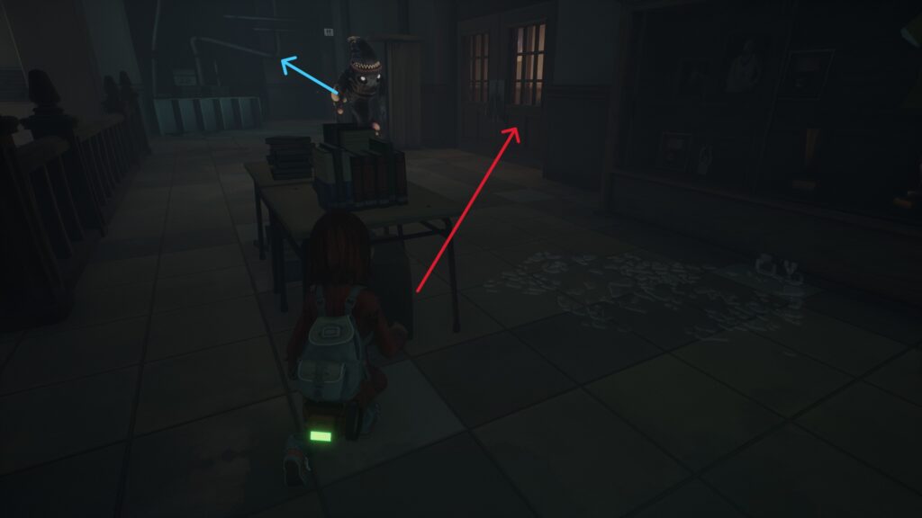机の陰に隠れてタイミングよくドアから出ましょう。
