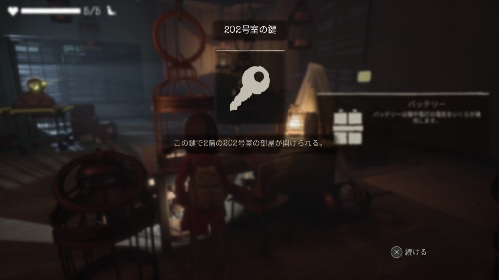 通路を戻り、部屋に入りましょう。