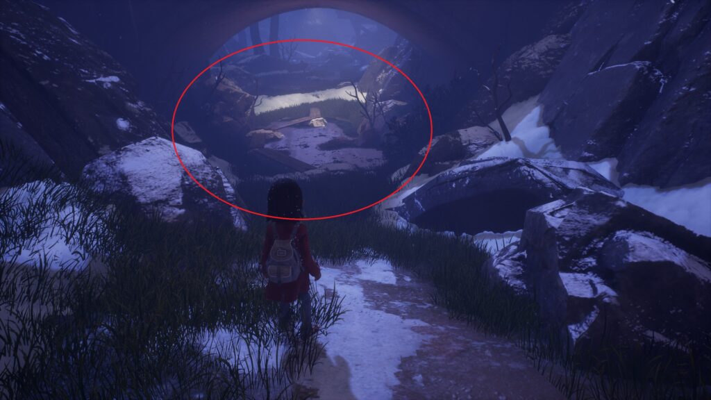 水たまりに橋がかかっているエリアを通ります。