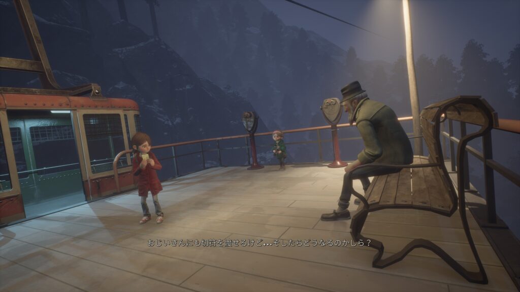 オープニングでケーブルカーへ向かう途中。(自転車が壊れた後)