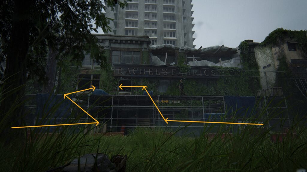 崩壊したビルの上層からボートを取りに下層に降りてくるエリア