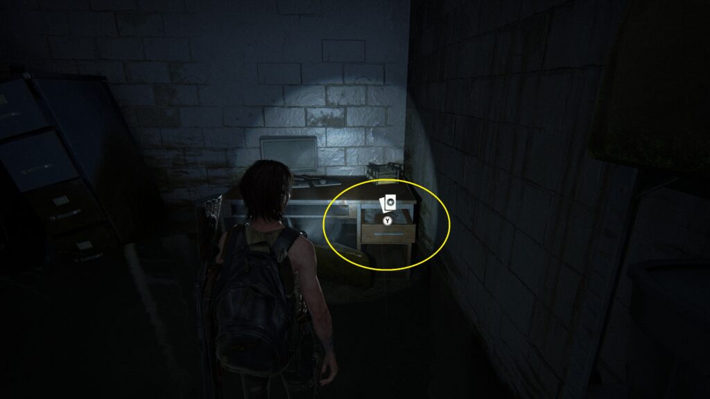 ボートから降りて振り返ると部屋があり、中の机の引き出し