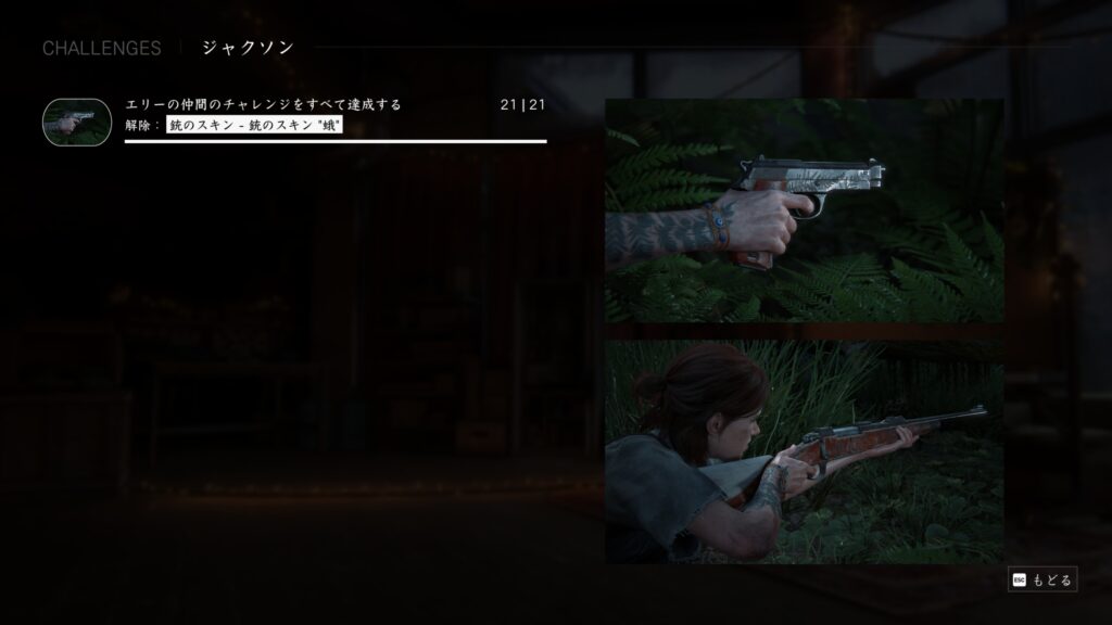 | ❷一度のエンカウンターで、スコープで照準中に敵を5キルする | 解除:仲間 – トミー |