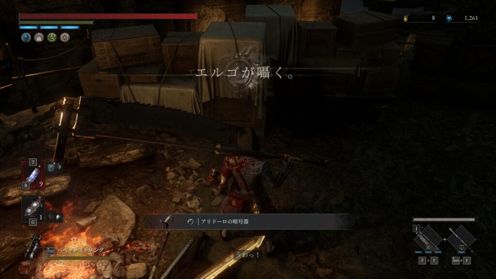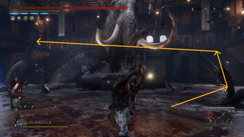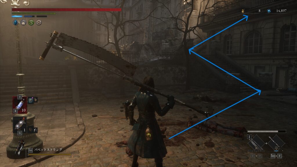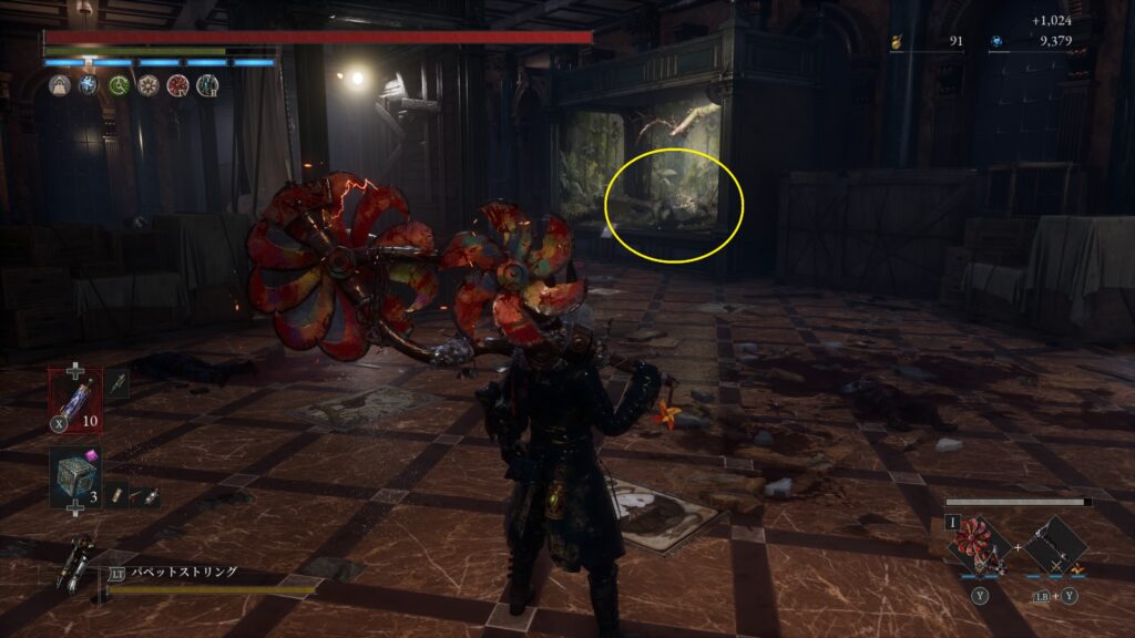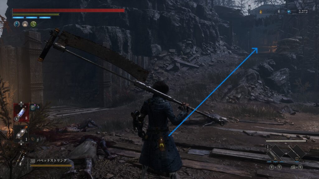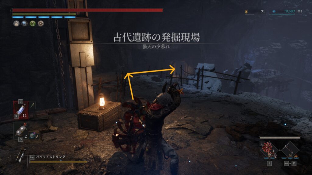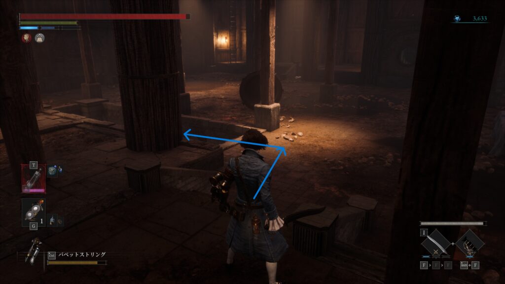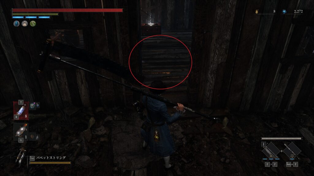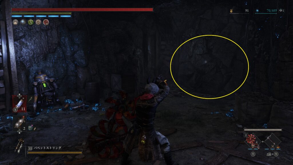 開通しておいたショートカットを進みハシゴを降りると粉砕人形がいる場所右手に調べるポイント