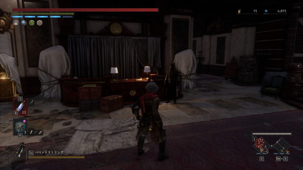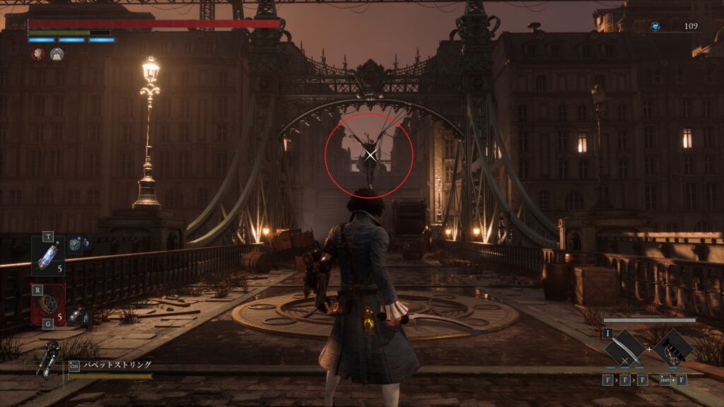 上から吊るされた人形に投擲物(歯車など)を投げると鍵を落とす