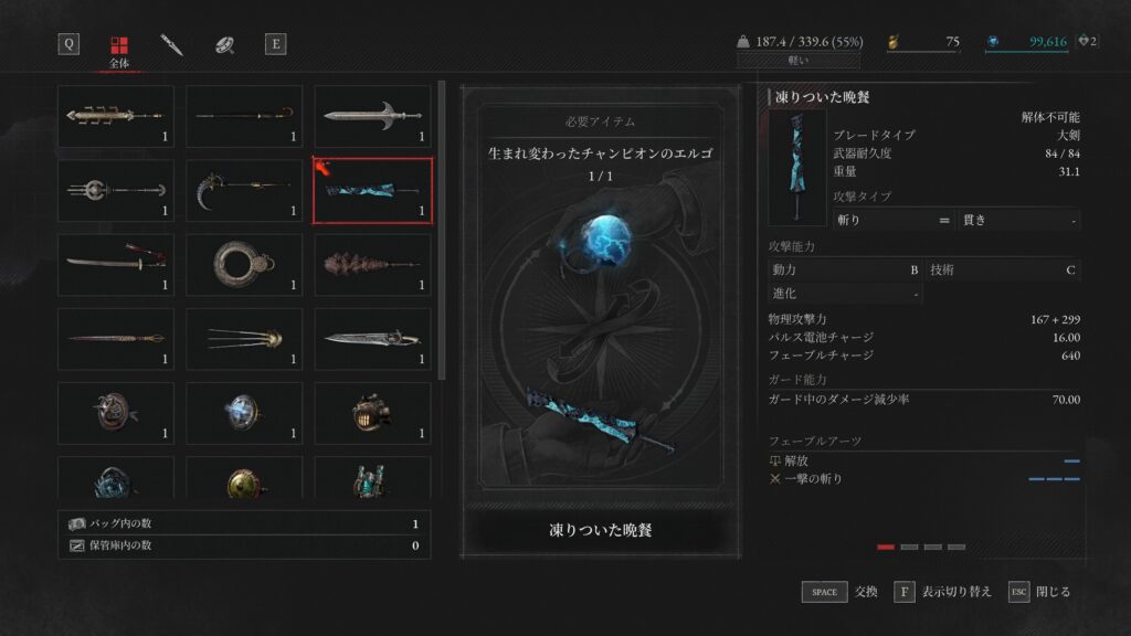 ❷エリア7のボスエルゴ「生まれ変わったチャンピオンのエルゴ」をアリドーロ /ヒューゴに渡し「凍りついた晩餐」に交換しておく