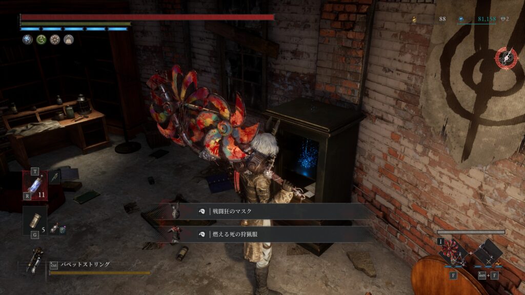 「燃える死の狩猟服」を装備すると「鍵の紛失記録」を入手できる