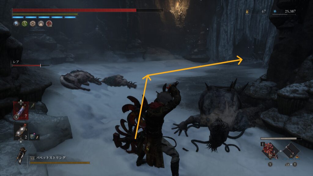 貫通系の敵が出てくるエリアに狼が氷柱を割って出現する