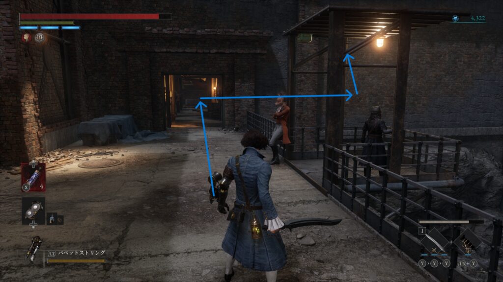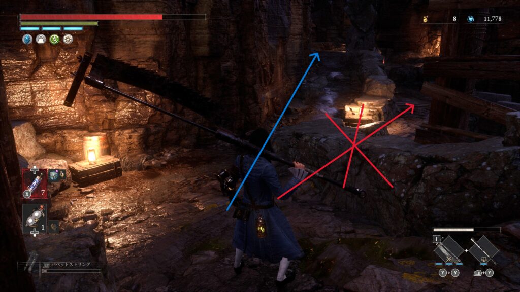 「忍耐のアミュレット」を落とす強敵がいるエリアからハシゴを登った先