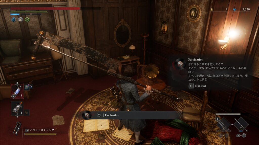 | Fascination | エリア6「エステラ歌劇場 入り口」 歌劇場2階のアデリーナに「真っ赤なリンゴ」を渡し「人形の王ロミオ」撃破後に再び戻ってくる |