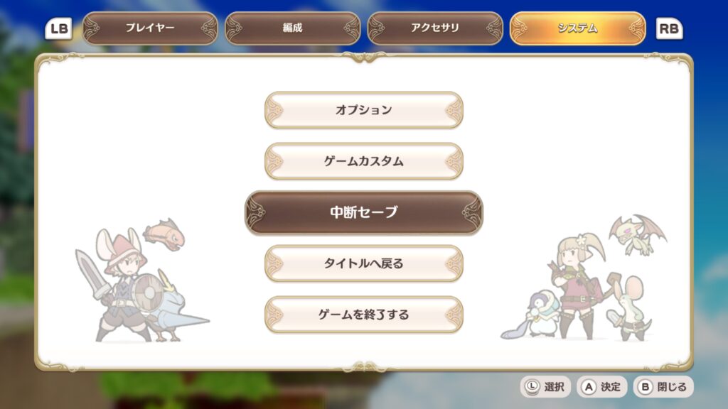 また、どちらのモードでもメニューから出来る中断セーブが最強。