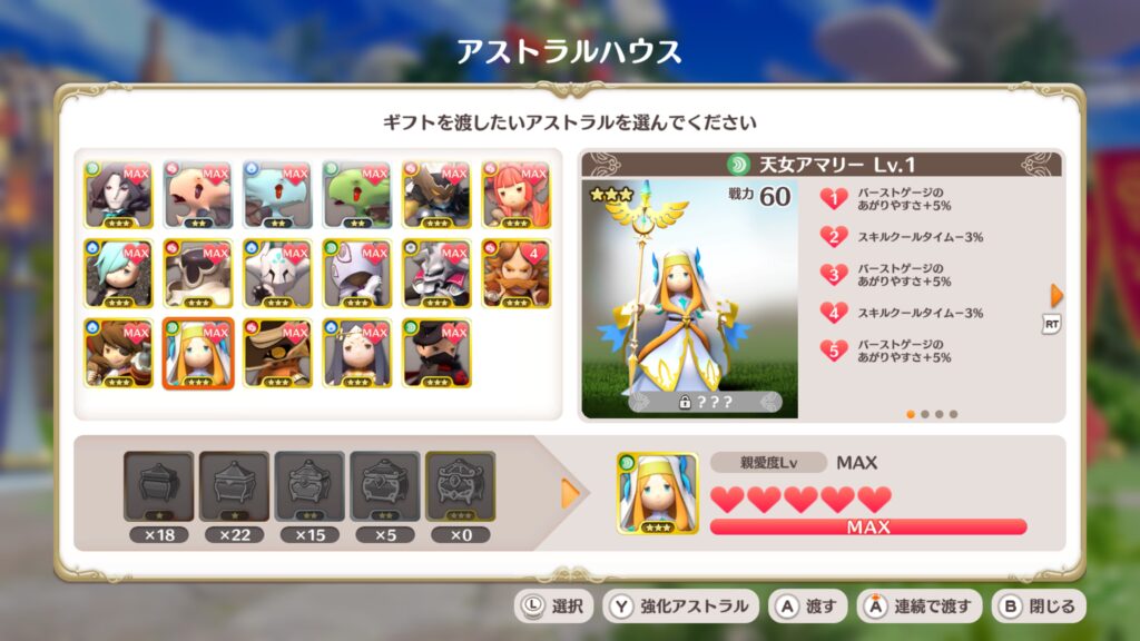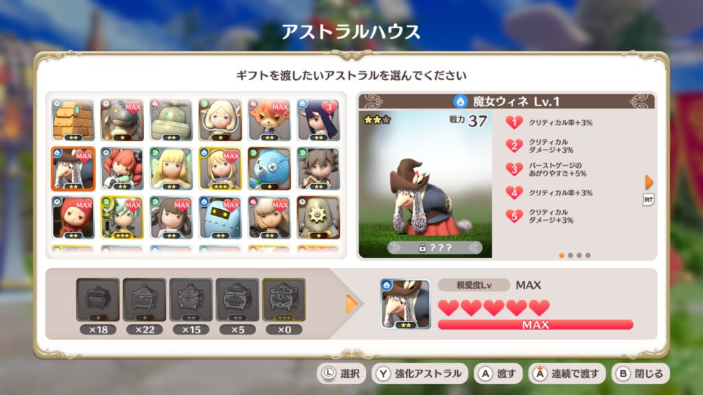 アストラル愛好家40種のアストラルの親愛度をMAXにする