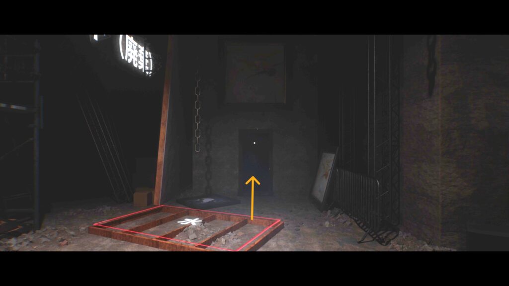 EXITの長い階段をすり抜けた後、赤いスイッチを押すと白い人型が全て消える