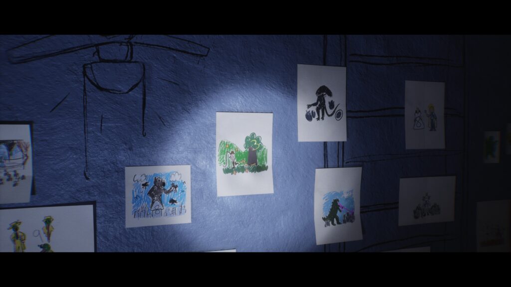 テレビ画面内の操作でチャプター4の方向へ戻ろうとするとXの文字を頭に持つ人型がいて通れない