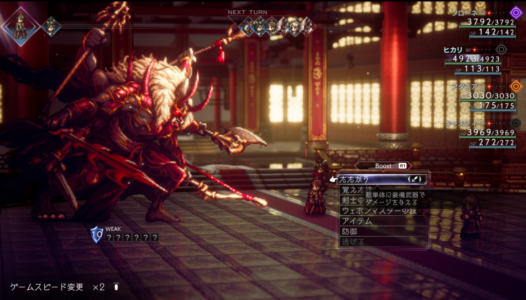HPを削るとイベント。自動的にフルブーストするので「たたかう」