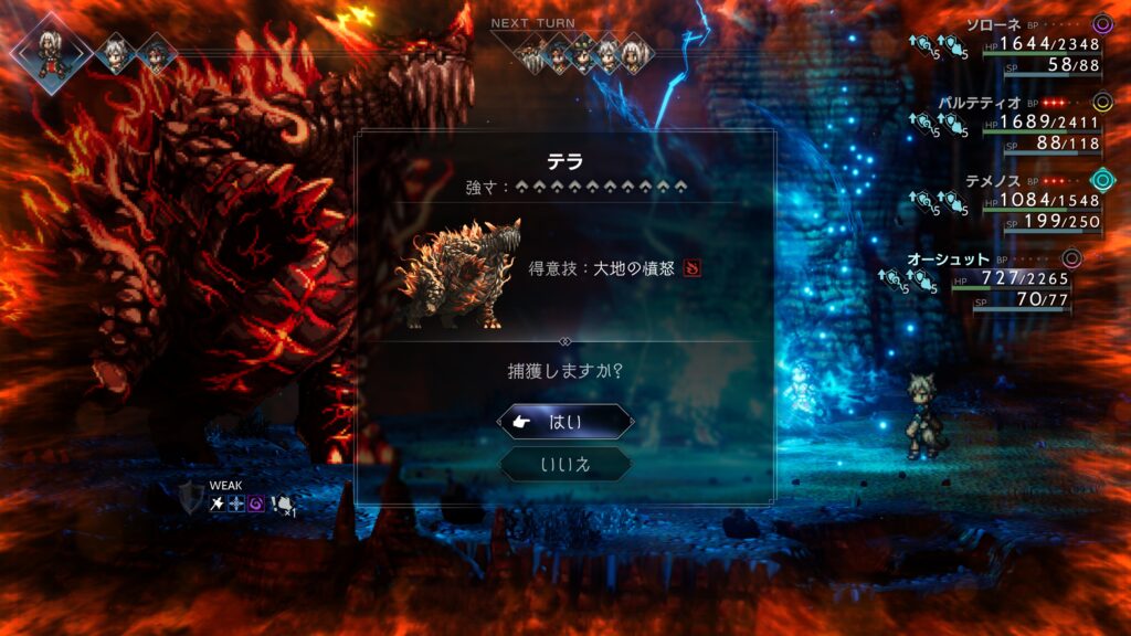 ある程度HPを削ってテラを「捕獲」すれば戦闘終了。