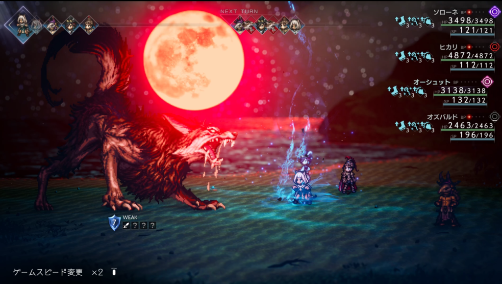 長いイベント後”緋月の夜”に入り、戦闘に。