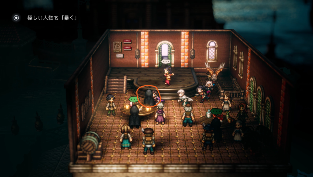 次に狙われるのが踊子だと気づいたので酒場に向かいます。