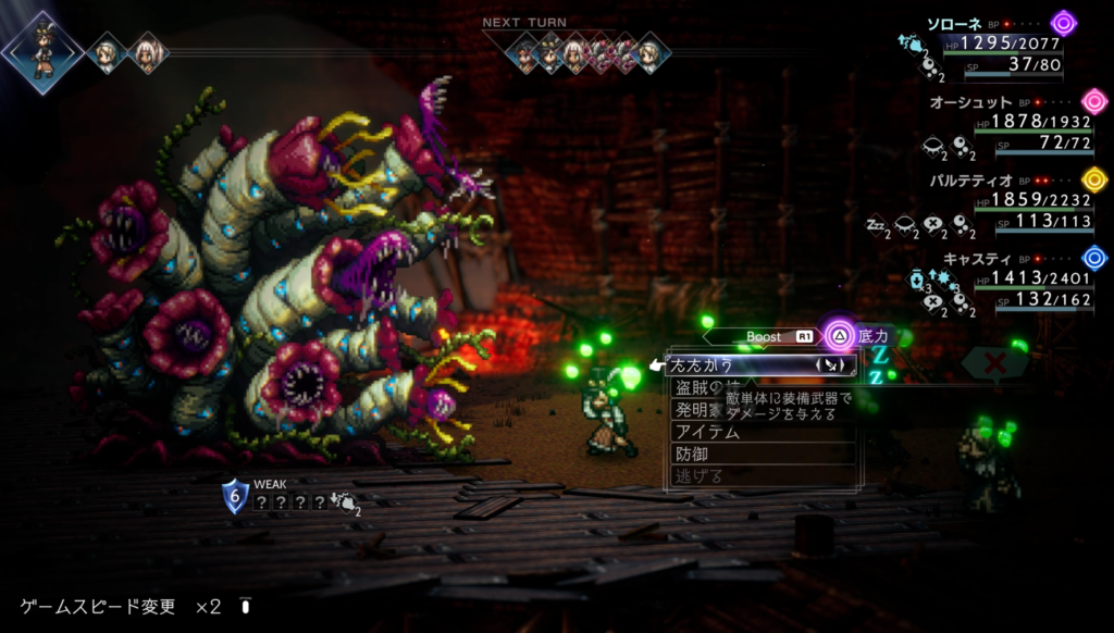 1ターンに2回行動を基本としてくるので悪臭+異常促進をされると自然回復することが難しくなってくる。