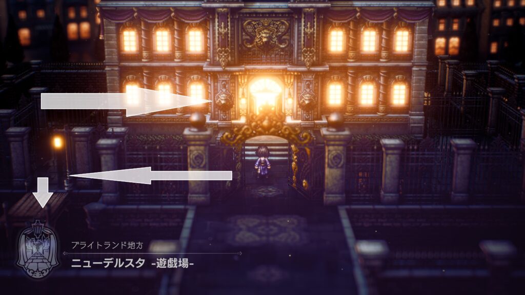 目的の盗賊団アジトは「ニューデルスタ -裏道-」の北東にある「ニューデルスタ -遊戯場-」