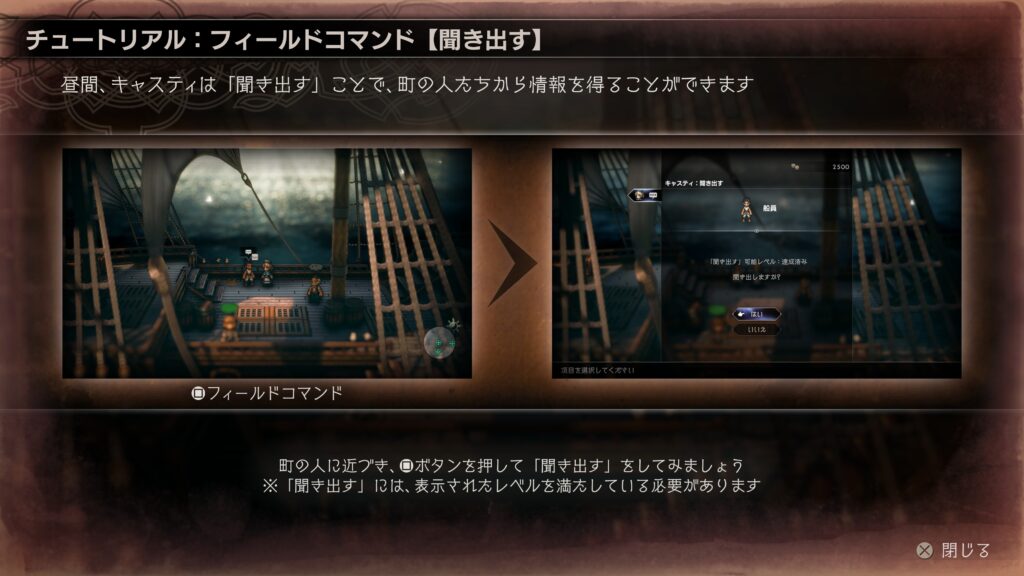 キャスティのレベルに応じて町の人から情報を聞き出すことが出来る。